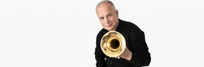 Na zdjęciu trębacz jazzowy Piotr Wojtasik