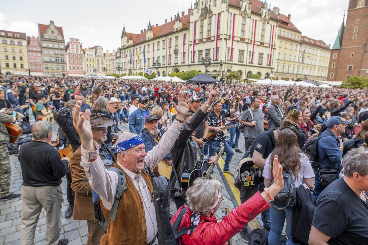 18 / 61 Wróć do artykułu Mamy to! Gitarowy Rekord Świata we Wrocławiu pobity. 7676 gitar zagrało na wrocławskim Rynku Mamy to! Gitarowy Rekord Świata we Wrocławiu pobity. 7676 gitar zagrało na wrocławskim Rynku Tomasz Hołod Przejdź do poprzedniego zdjęcia. Poprzednie Następne Przejdź do kolejnego zdjęcia. Gitarowy Rekord Guinnessa 2022