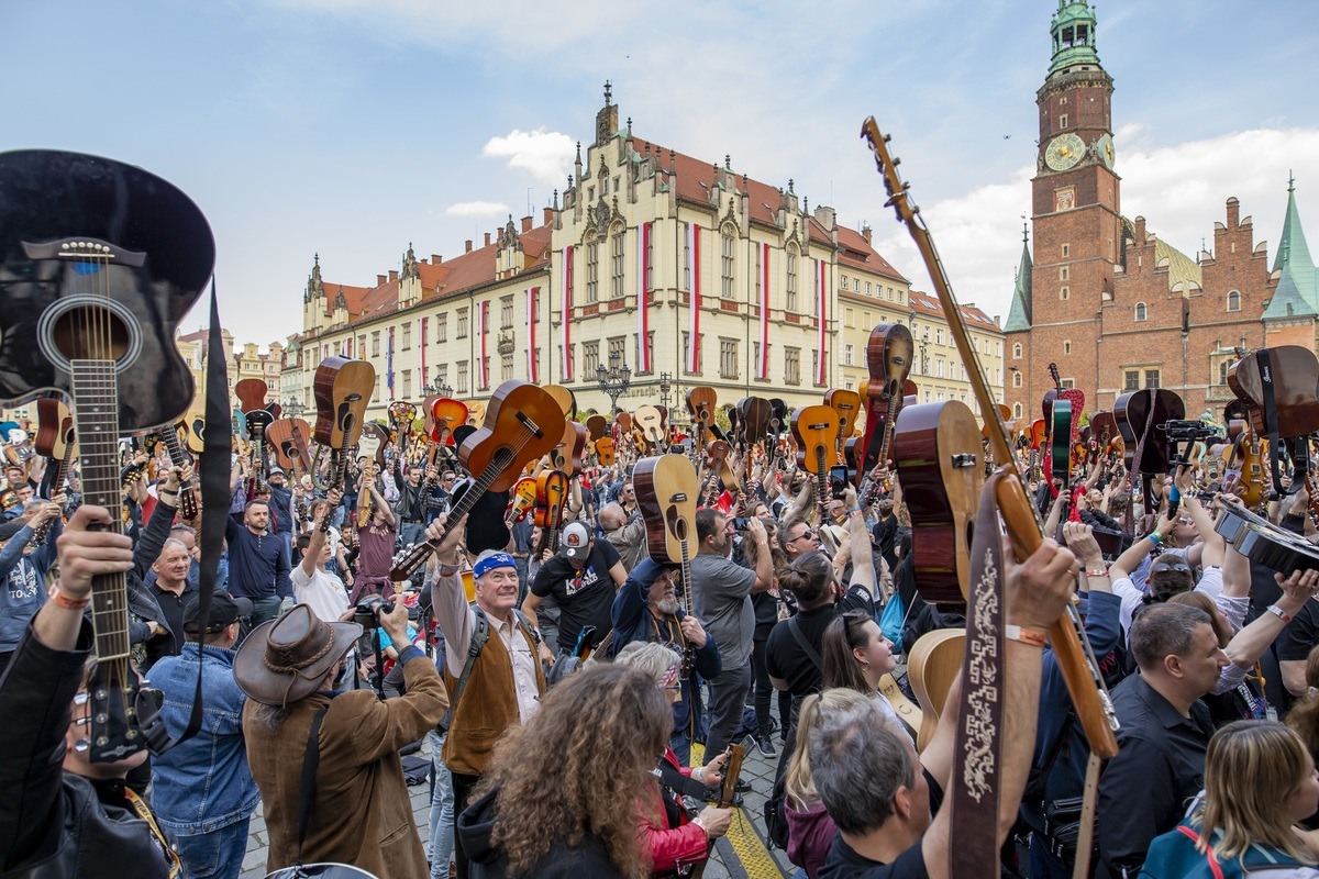 24 / 61 Wróć do artykułu Mamy to! Gitarowy Rekord Świata we Wrocławiu pobity. 7676 gitar zagrało na wrocławskim Rynku Mamy to! Gitarowy Rekord Świata we Wrocławiu pobity. 7676 gitar zagrało na wrocławskim Rynku Tomasz Hołod Przejdź do poprzedniego zdjęcia. Poprzednie Następne Przejdź do kolejnego zdjęcia. Gitarowy Rekord Guinnessa 2022