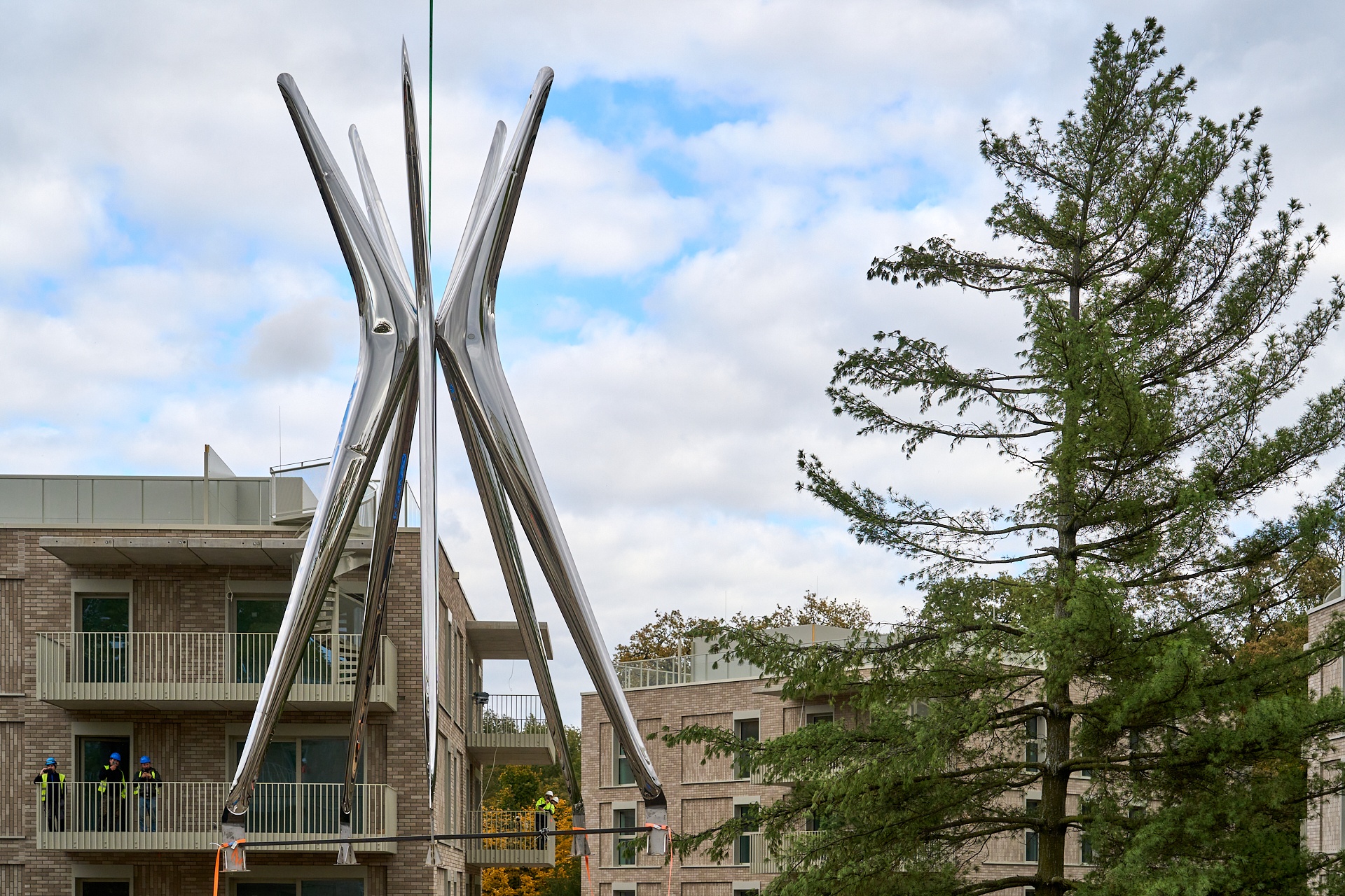 Dzień instalowania rzeźby Oskara Zięty w Apartamentach przy Parku Szczytnickim, 15 października 2024
