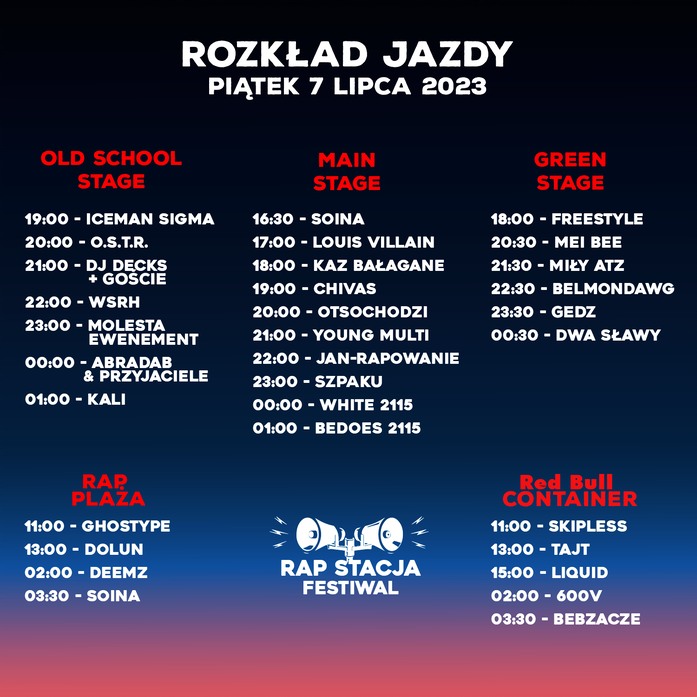 47 / 49 Wróć do artykułu Rap Stacja 2023 w Sławie. Tysiące fanów i największe gwiazdy hip-hopu. Kto zagra? [BILETY, DOJAZD] Rap Stacja 2023 w Sławie. Tysiące fanów i największe gwiazdy hip-hopu. Kto zagra? [BILETY, DOJAZD] rapstacja.com.pl Przejdź do poprzedniego zdjęcia. Poprzednie Następne Przejdź do kolejnego zdjęcia. Rap Stacja 2023 w Sławie. Kto zagra? PIĄTEK