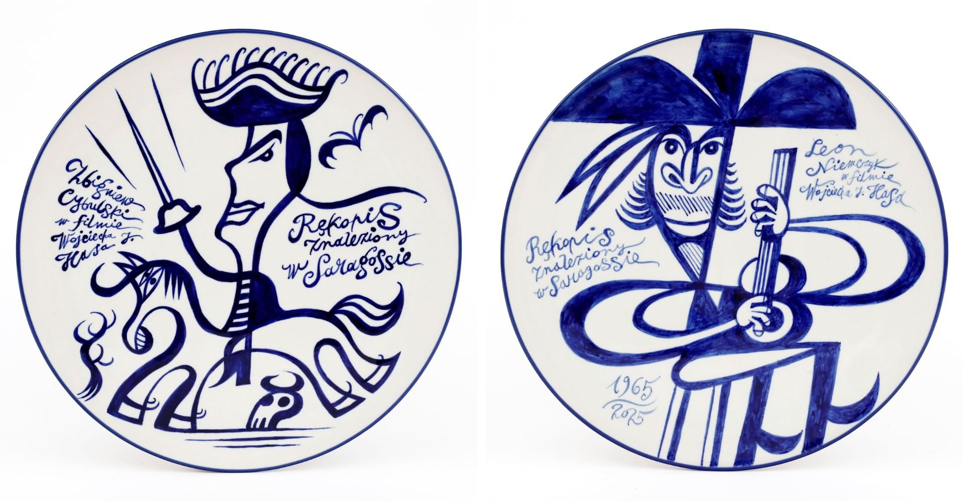 Talerze z Ceramiki Artystycznej w Bolesławcu malowane ręcznie przez Tomasza Brodę – z lewej Zbyszek Cybulski, z prawej Leon Niemczyk (wizerunki bohaterów „Rękopisu” z filmu Hasa)