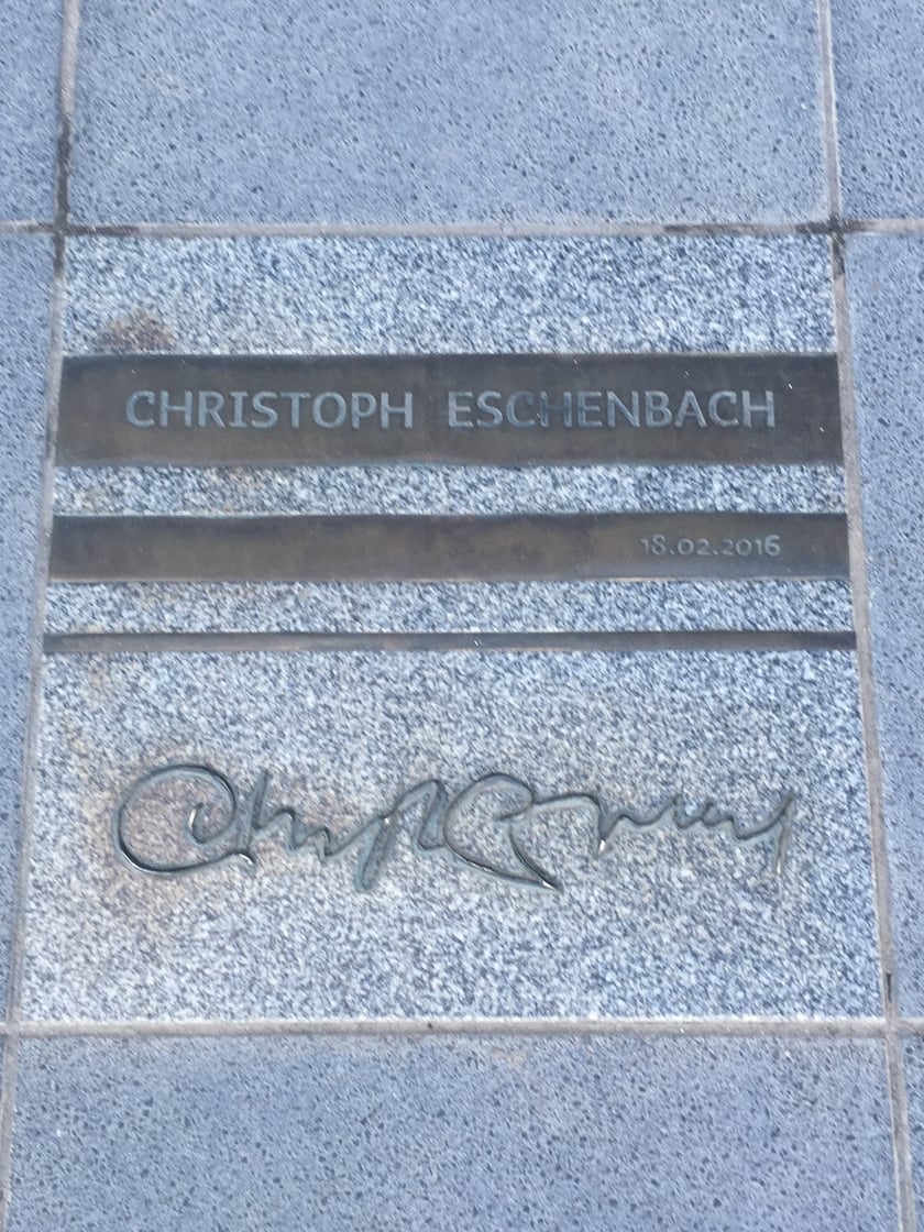 Tablica pamiątkowa przed Narodowym Forum Muzyki – dyrygent i pianista Christoph Eschenbach