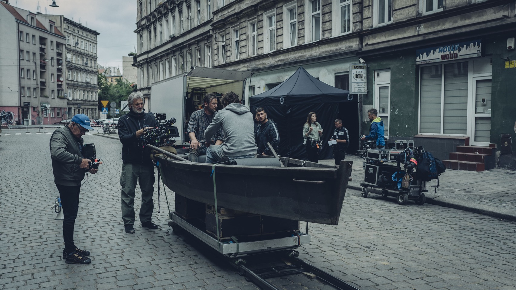 Nie tylko amfibia była umieszczona platformie, także łódź bohaterów serialu ?Wielka woda?