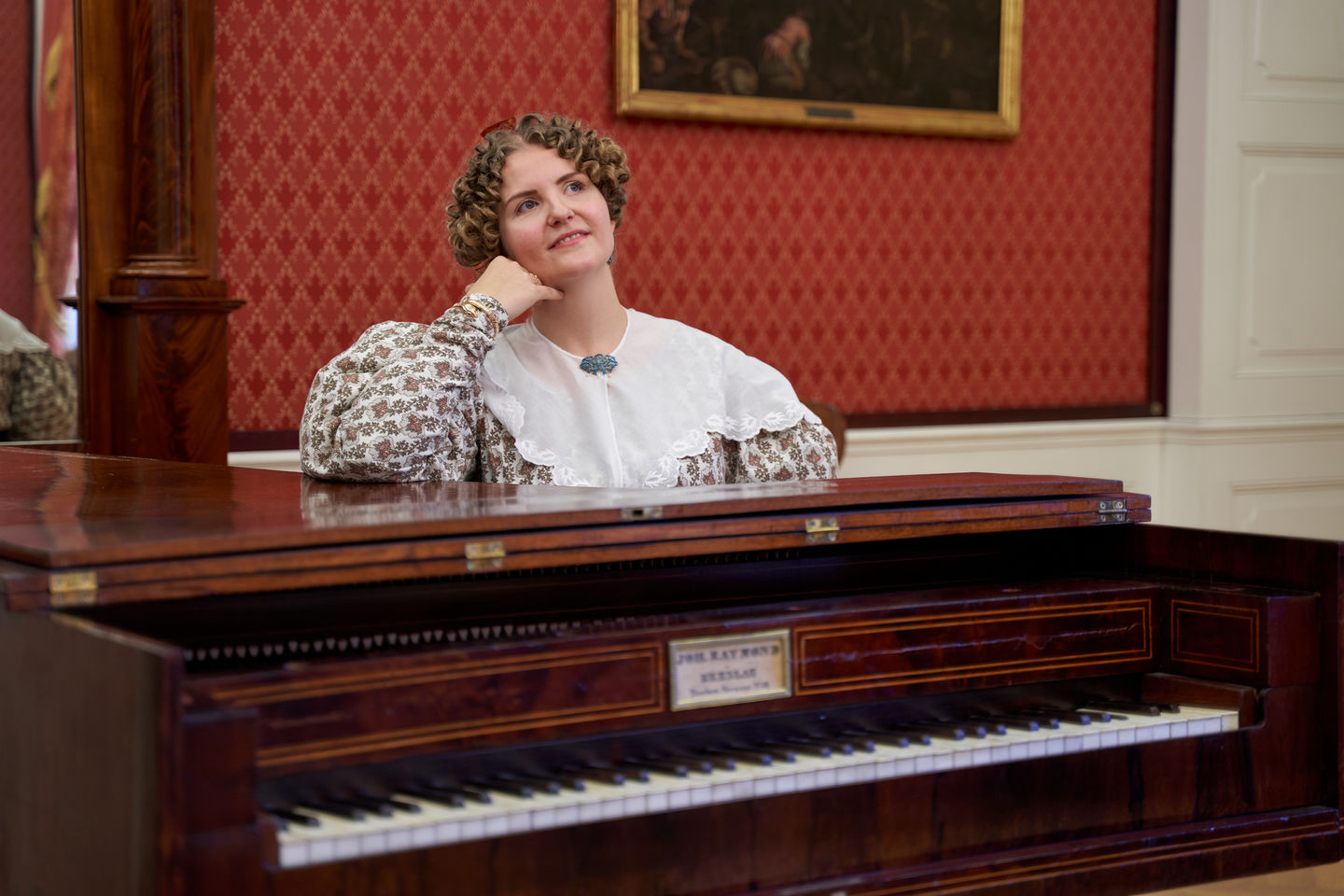 Edyta Herczyńska we wnętrzach Pałacu Królewskiego we Wrocławiu pozuje w sukni, jaką Panie nosiły ok. 1830 roku