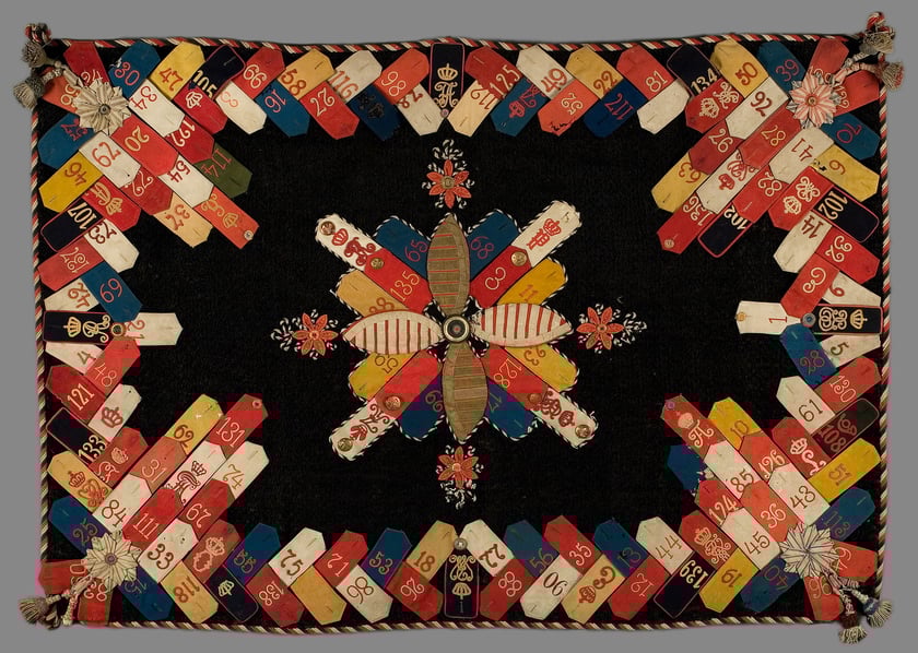Autor nieznany, tkanina XIX w., szycie ręczne, tkanina wełniana (epolety mundurowe), płótno, metalowe guziki