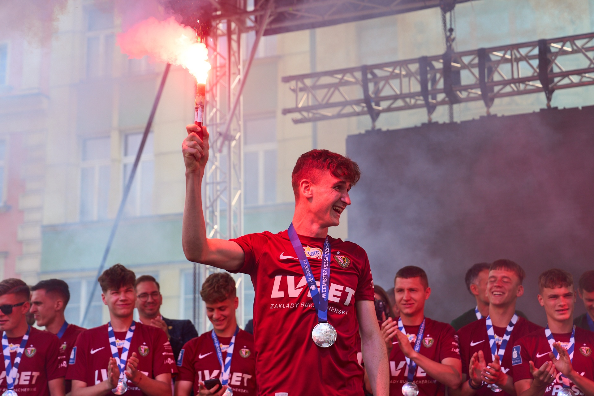 101 / 133 Wróć do artykułu Kibice Śląska fetowali z drużyną wicemistrzostwo Polski Kibice Śląska fetowali z drużyną wicemistrzostwo Polski Fot. Oleksandr Poliakovsky Przejdź do poprzedniego zdjęcia. Poprzednie Następne Przejdź do kolejnego zdjęcia. Kibice witają wicemistrzów Polski - drużynę Śląska Wrocław - na wrocławskim Rynku.