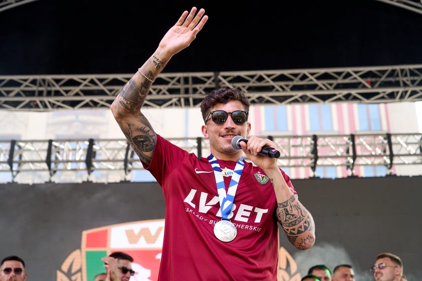 127 / 133 Wróć do artykułu Kibice Śląska fetowali z drużyną wicemistrzostwo Polski Kibice Śląska fetowali z drużyną wicemistrzostwo Polski Fot. Oleksandr Poliakovsky Przejdź do poprzedniego zdjęcia. Poprzednie Następne Przejdź do kolejnego zdjęcia. Kibice witają wicemistrzów Polski - drużynę Śląska Wrocław - na wrocławskim Rynku.